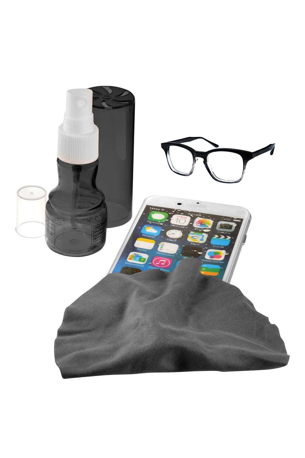 Keep your glasses and device screens spotless with our 1oz cleaning spray and microfiber cloth set. The cap conveniently holds the cloth, while the vented design ensures it dries quickly. Ideal for maintaining a crystal-clear view wherever you go!