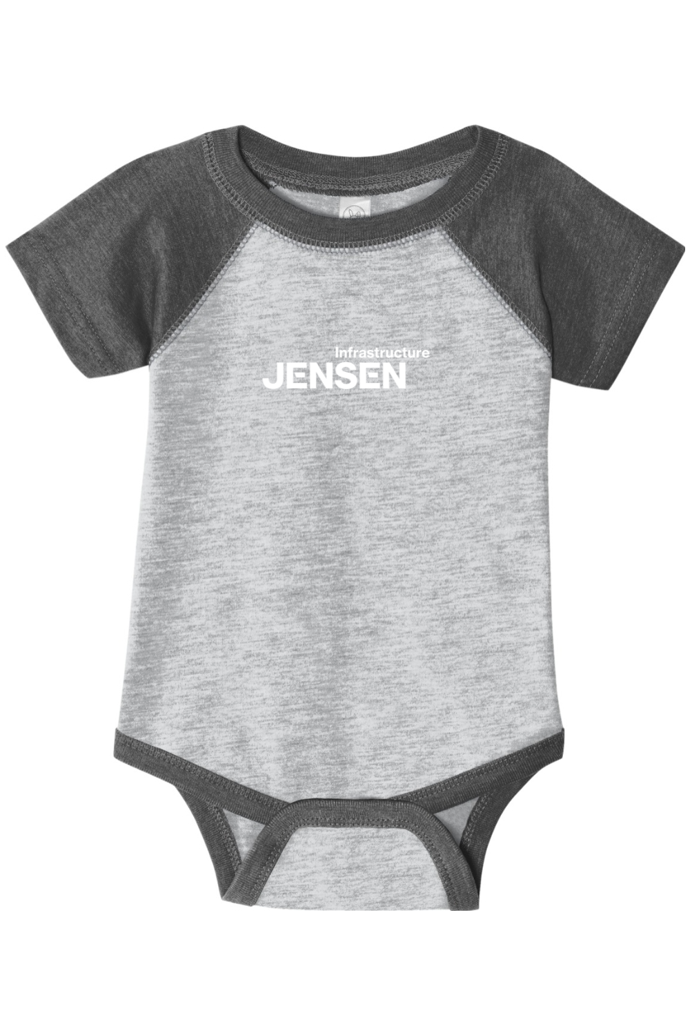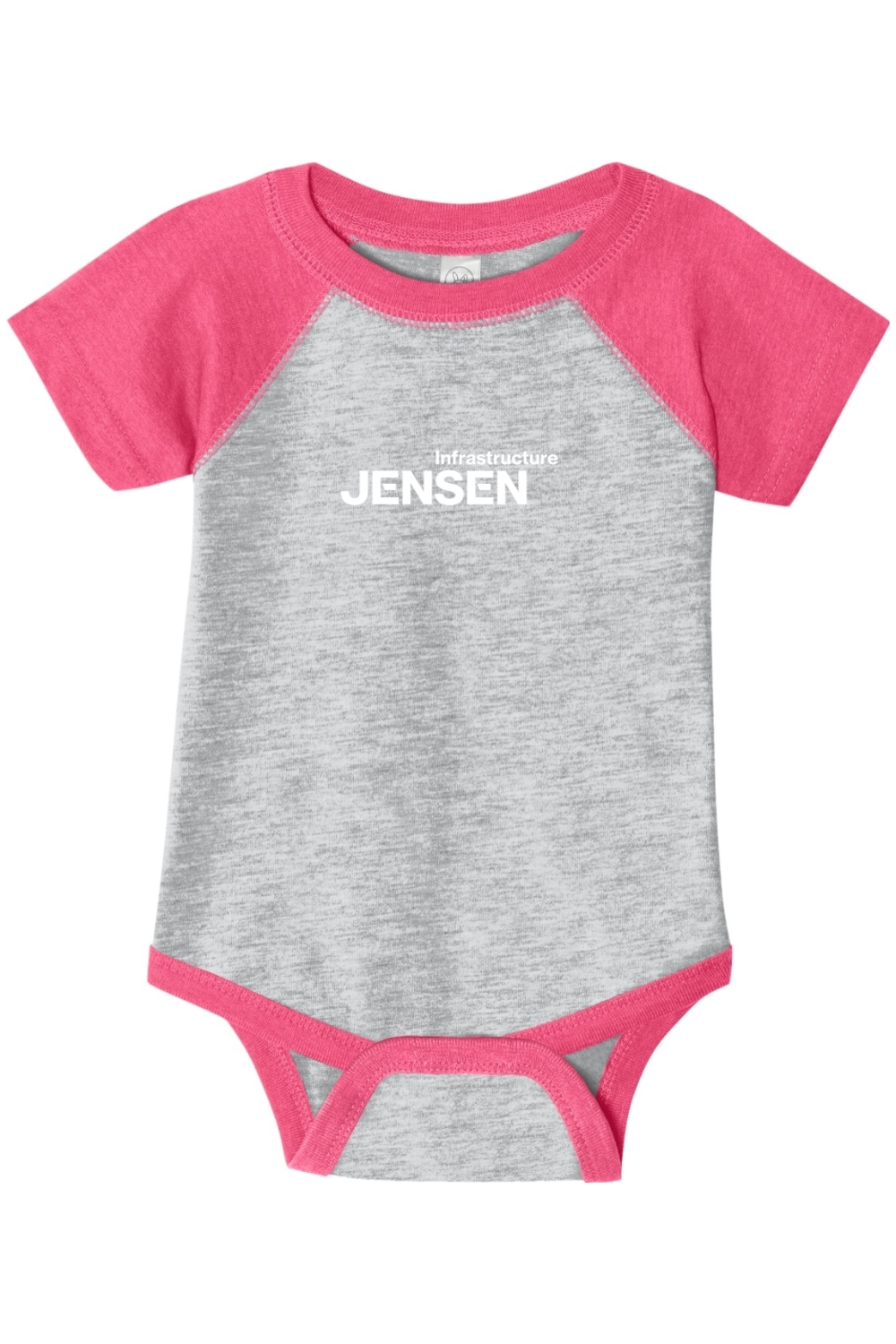 Hit a style home run with this infant baseball jersey bodysuit, designed for parents who want playful style and everyday comfort. Made from soft, lightweight cotton jersey, it’s gentle on baby’s skin and durable enough for daily wear. Smooth seams, gentle binding, and a three-snap bottom closure make changes quick and easy. Finished with a high-quality DTF logo from Jensen Infrastructure for a bold, long-lasting look.