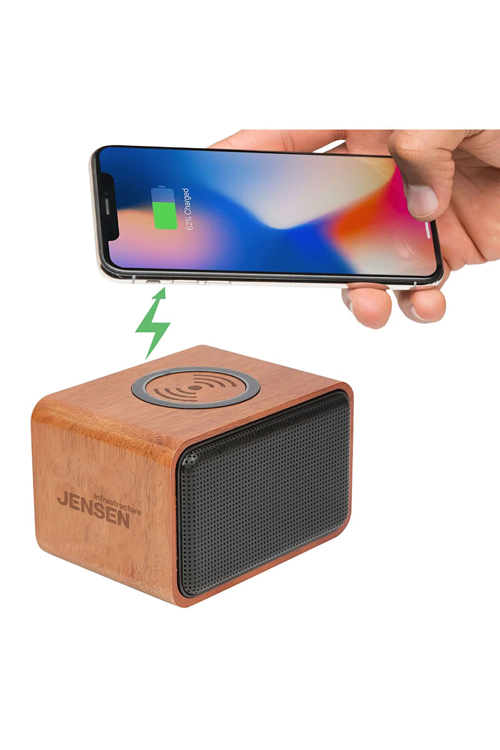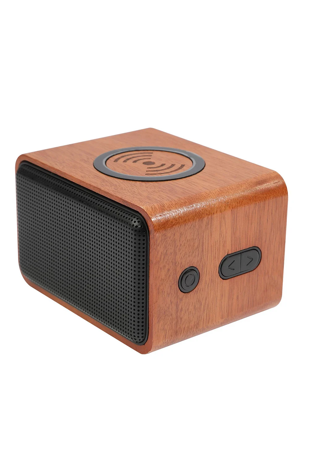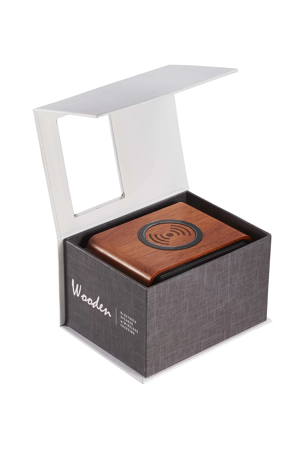 Bring natural style and modern tech together with this Wood Bluetooth Speaker with Wireless Charging Pad. Crafted from real wood, it delivers rich sound while doubling as a convenient wireless charging surface for compatible devices. Perfect for desks, nightstands, or home offices, it blends warm design with everyday functionality. Packaged in a premium FSC certified gift box, each piece is uniquely beautiful, making it a standout gift that looks as good as it sounds.