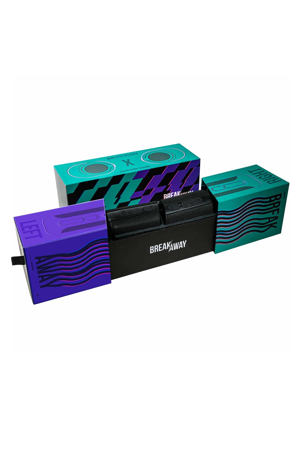 Elevate your listening experience with the breakaway speaker, which offers true stereo sound by easily separating into two speakers. Designed to fill large spaces with high-quality surround sound, its silicone sleeve allows for convenient twisting back together for portability, making it perfect for on-the-go use.
