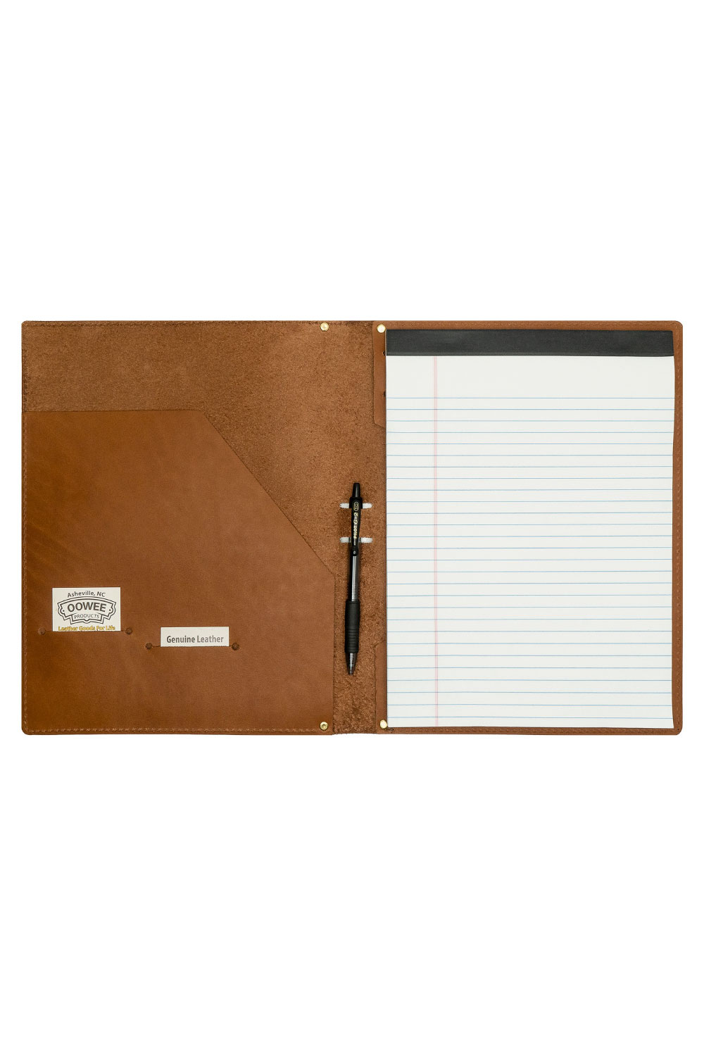Crafted from premium full-grain leather, this classic portfolio is both functional and refined—perfect for meetings, conferences, or daily organization. It fits standard 8.5″ x 11″ legal pads (one included) and features interior pockets for documents, business cards, and a pen slot. Handmade in Asheville, NC using 100% domestically tanned leather, each piece features the Jensen logo debossed on the front cover for a subtle, professional finish. Size: 12.5″ H x 9.75″ W x 0.75″ D.