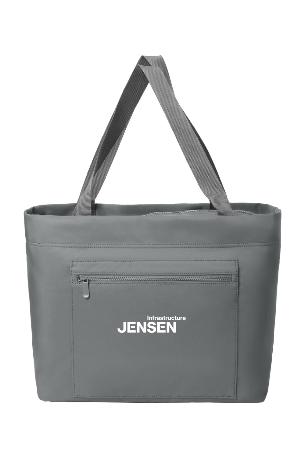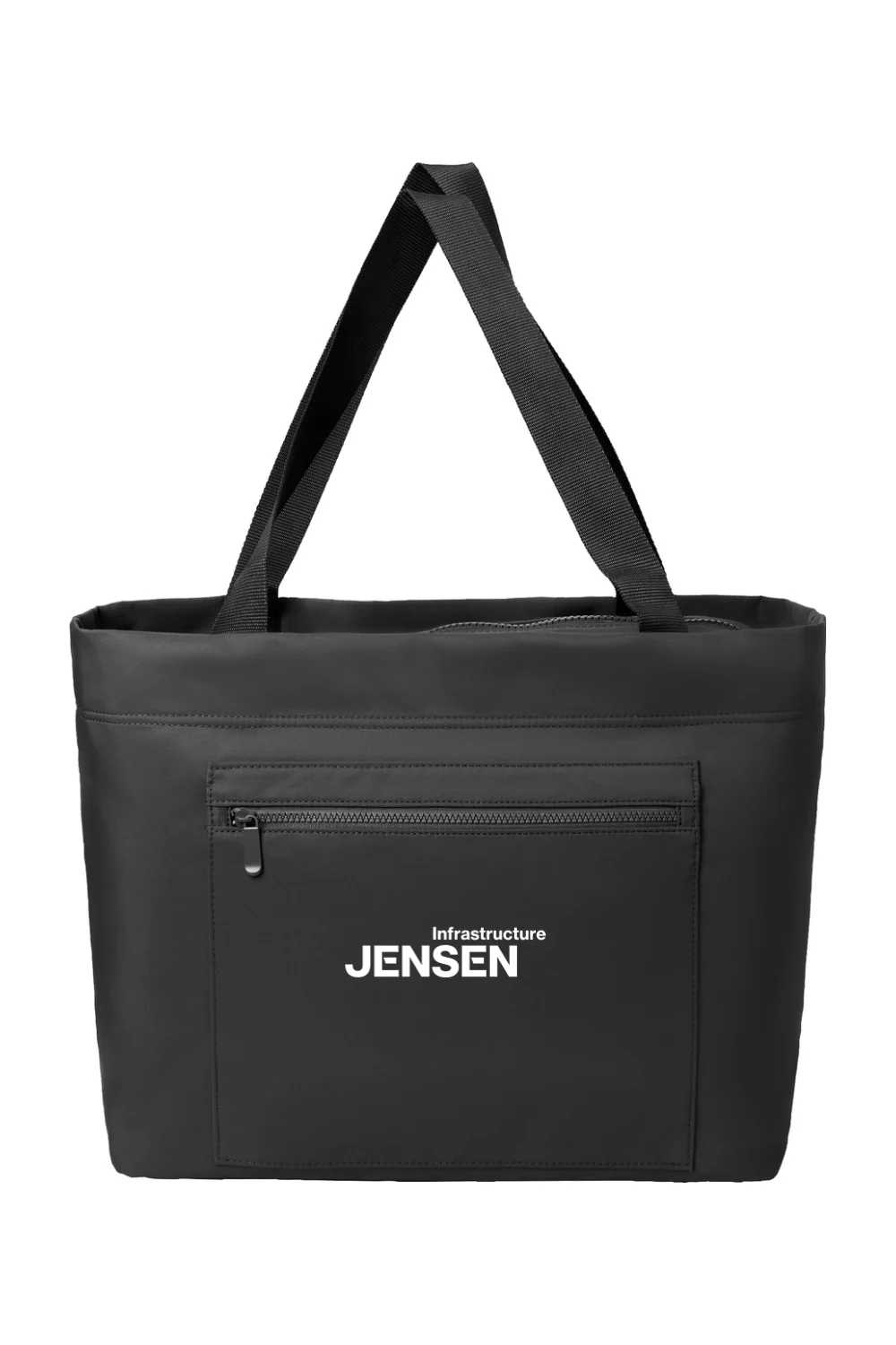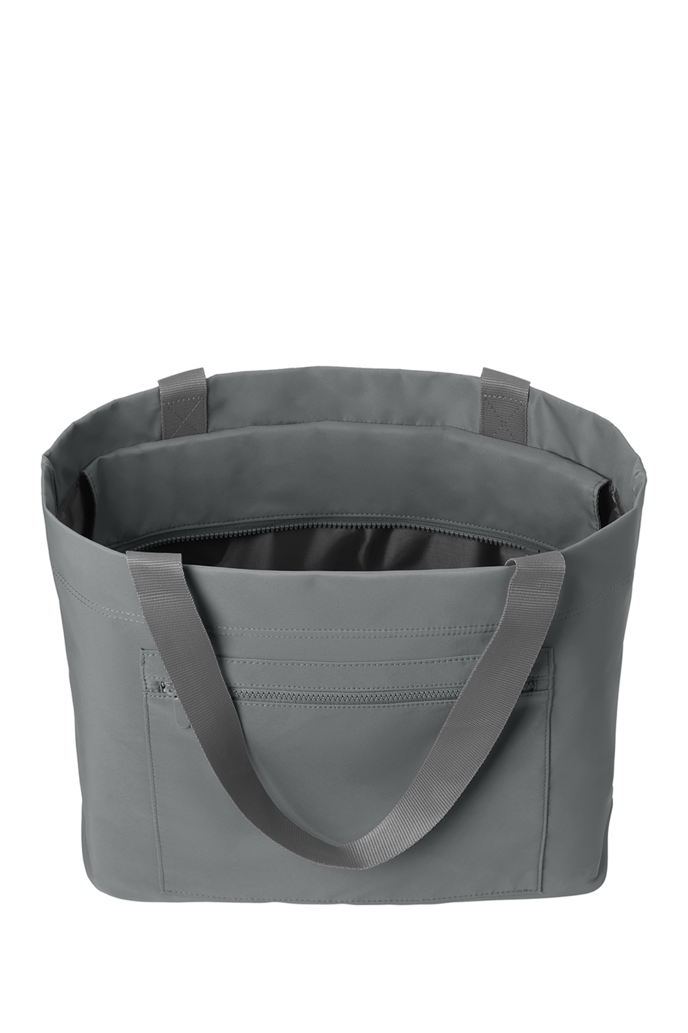 The Matte Carryall Tote offers sleek style and practicality for daily use and travel. Made from soft matte polyester and woven fabric, it combines a sophisticated look with durability. Key features include a zippered main compartment, zippered front pocket, and dyed-to-match molded closures to keep essentials secure. Webbing shoulder handles and a luggage cart pass-through add convenience. With dimensions of 13.75″h x 19″w (top) x 17″w (bottom) x 7″d, it provides ample space while remaining portable. The tote also includes a DTF logo for a personalized touch. Elevate your carryall with the Matte Carryall Tote.