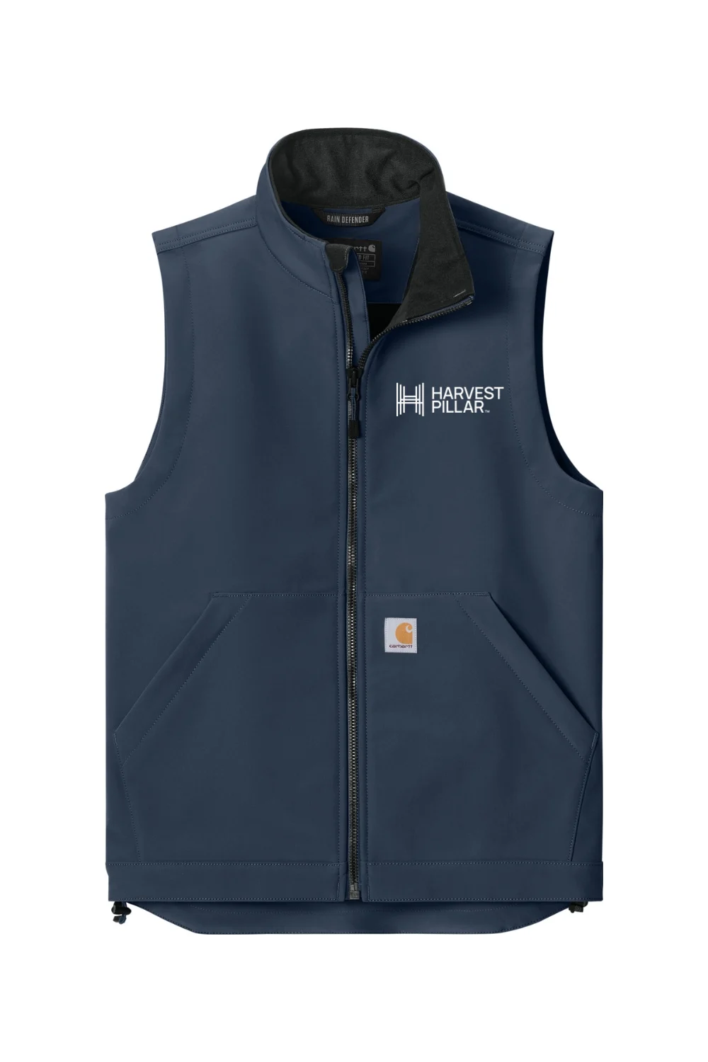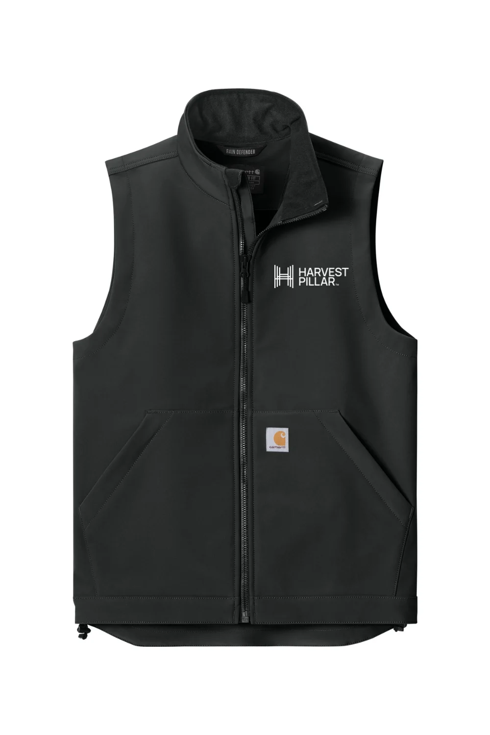 Stay productive through unpredictable weather with the Men’s Carhartt Rain Defender Soft Shell Vest. Designed to handle wind and light rain, this durable vest delivers reliable protection without restricting movement. Rugged Flex stretch fabric keeps you comfortable on the job, while zippered pockets and a mock neck collar add everyday practicality. Finished with an embroidered logo on the left chest, this vest combines trusted Carhartt performance with a clean, professional look built for workdays that do not slow down.