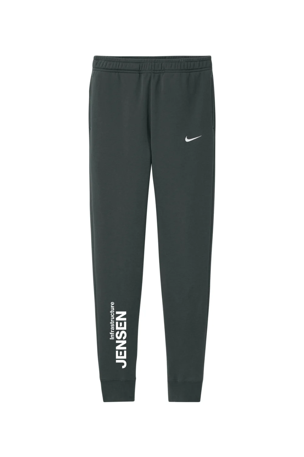 Stay cozy, look sharp, and move with ease. These Nike joggers bring together warmth, comfort, and performance—perfect for workouts or weekends. Featuring a sleek embroidered Swoosh, ribbed cuffs for a tailored fit, and handy pockets (including a snap-closure back pocket), they’re made with a soft cotton blend and adjustable drawstring waist for all-day wear. Finished with the DTF Jensen logo on the lower leg for that extra touch of style.