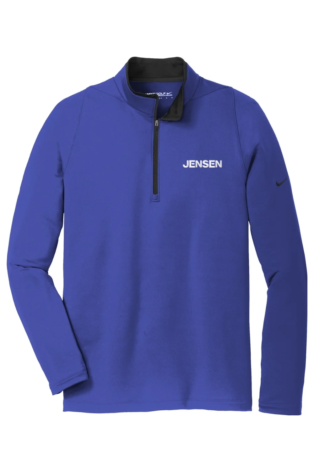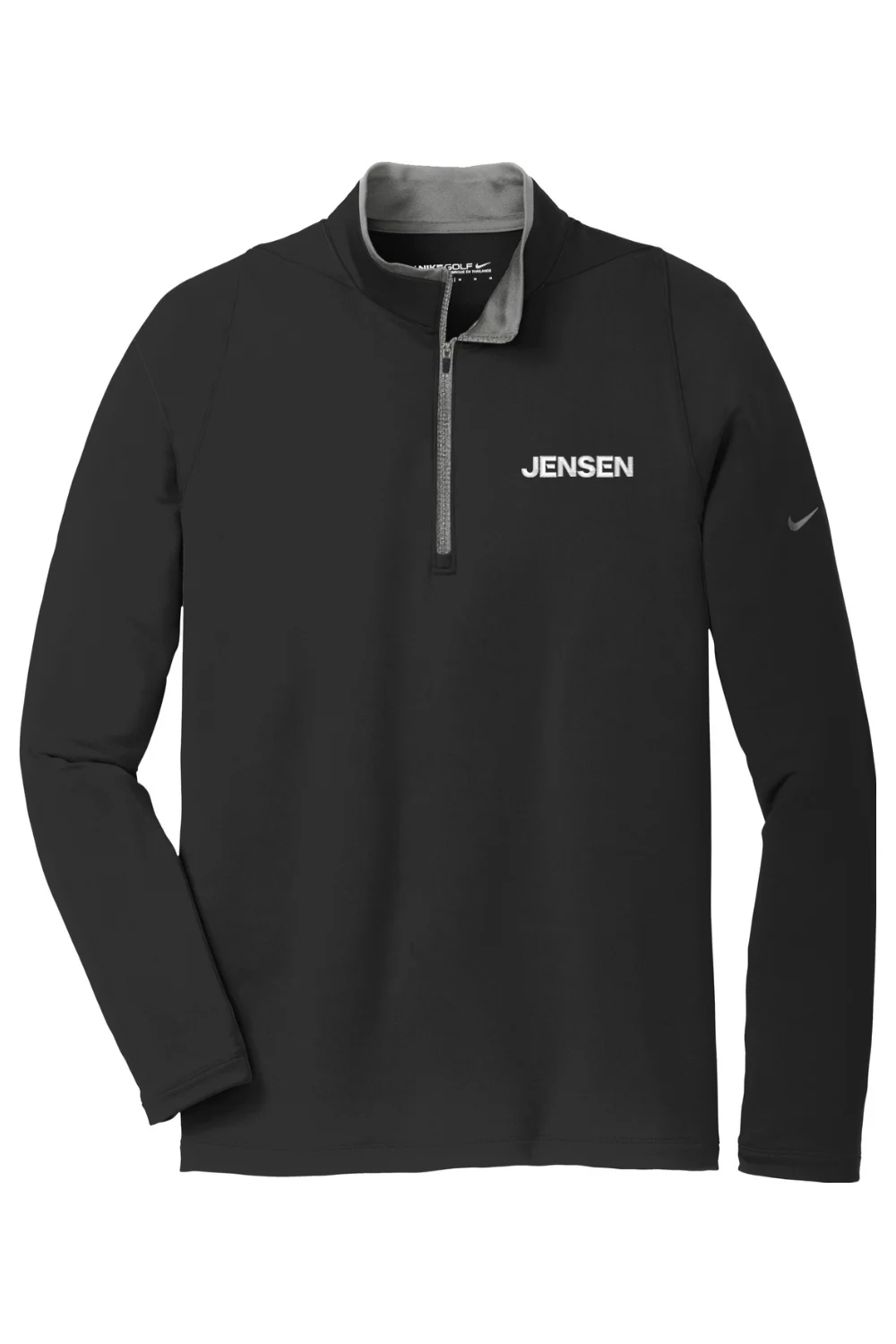 The Men’s Nike Dri-FIT Stretch 1/2-Zip Cover-Up is your go-to layer for the course, the gym, or just kicking back around town. With sleek stretch fabric and Nike’s signature Dri-FIT technology, it keeps you cool, comfortable, and moving freely. The Jensen logo on the chest and the iconic Swoosh on the sleeve add just the right touch of style.