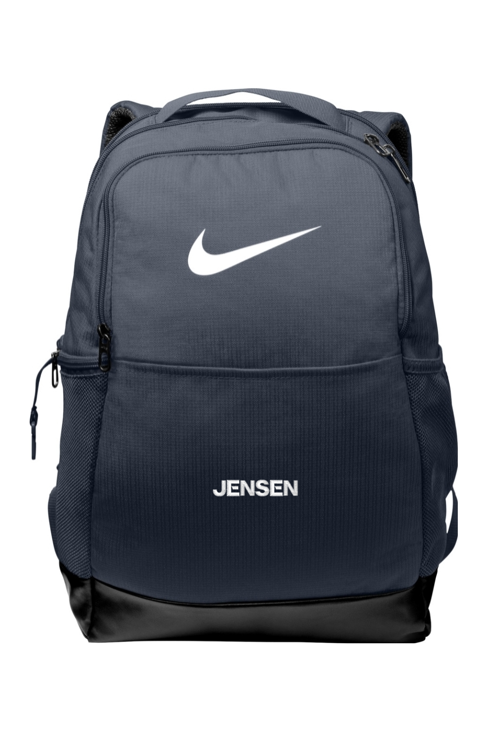 Pack it all in style with the Nike Brasilia Medium Backpack—your go-to bag for busy training days, weekend adventures, or just keeping life organized on the move. With comfy padded straps, smart pockets (including a plush-lined spot for your electronics), and a laptop sleeve, it’s built to carry everything with ease. The water-resistant bottom helps keep your gear dry, while the embroidered Jensen logo on the front makes it unmistakably yours.
