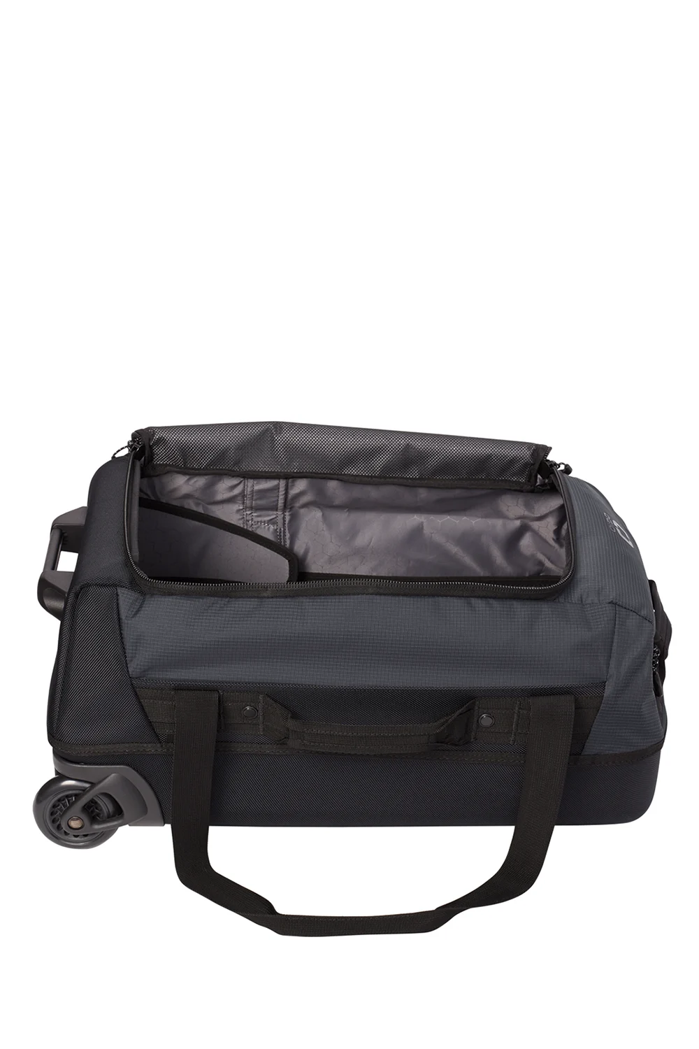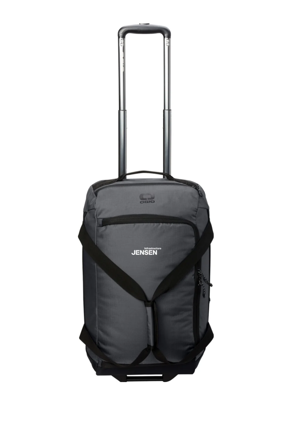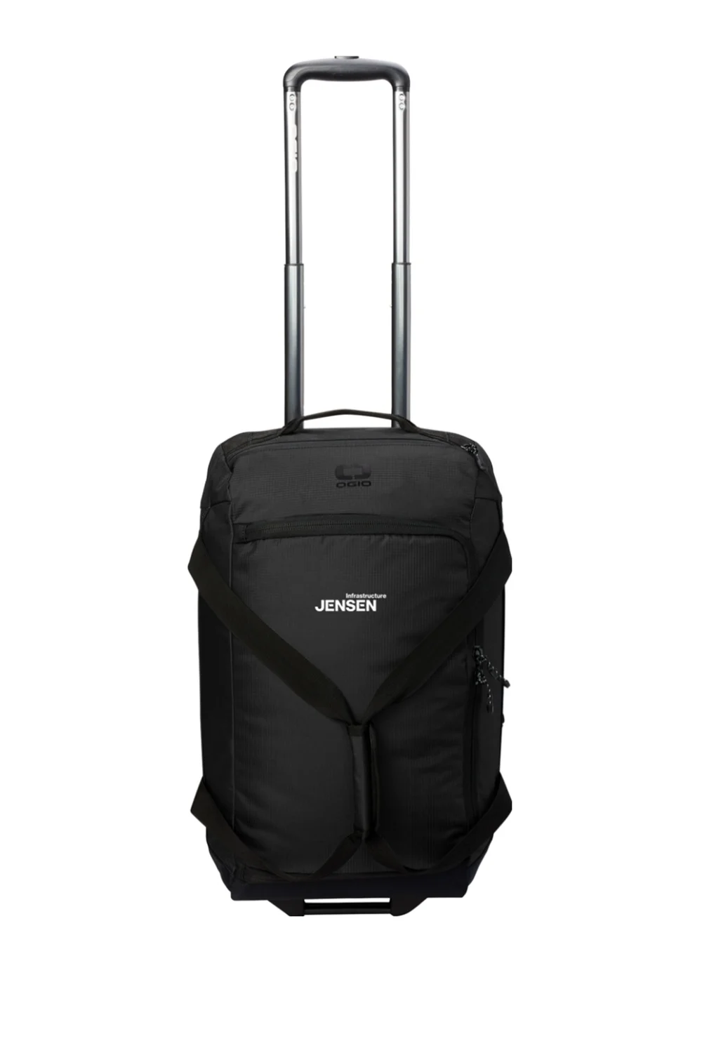 Upgrade your travel with the Passage Wheeled Carry-On Duffel. Equipped with a telescoping handle, a top zippered valuables pocket, and rugged in-line wheels, it ensures smooth and secure journeys. The compression-molded panels and padded grab handles offer durability and comfort, while interior features like zippered mesh pockets and compression straps keep your gear organized. With its high-density O screen print and convenient luggage feet handle, the Passage Duffel combines practicality with style for the modern traveler. Plus, it comes with a professionally DTF logo, adding a touch of sophistication.