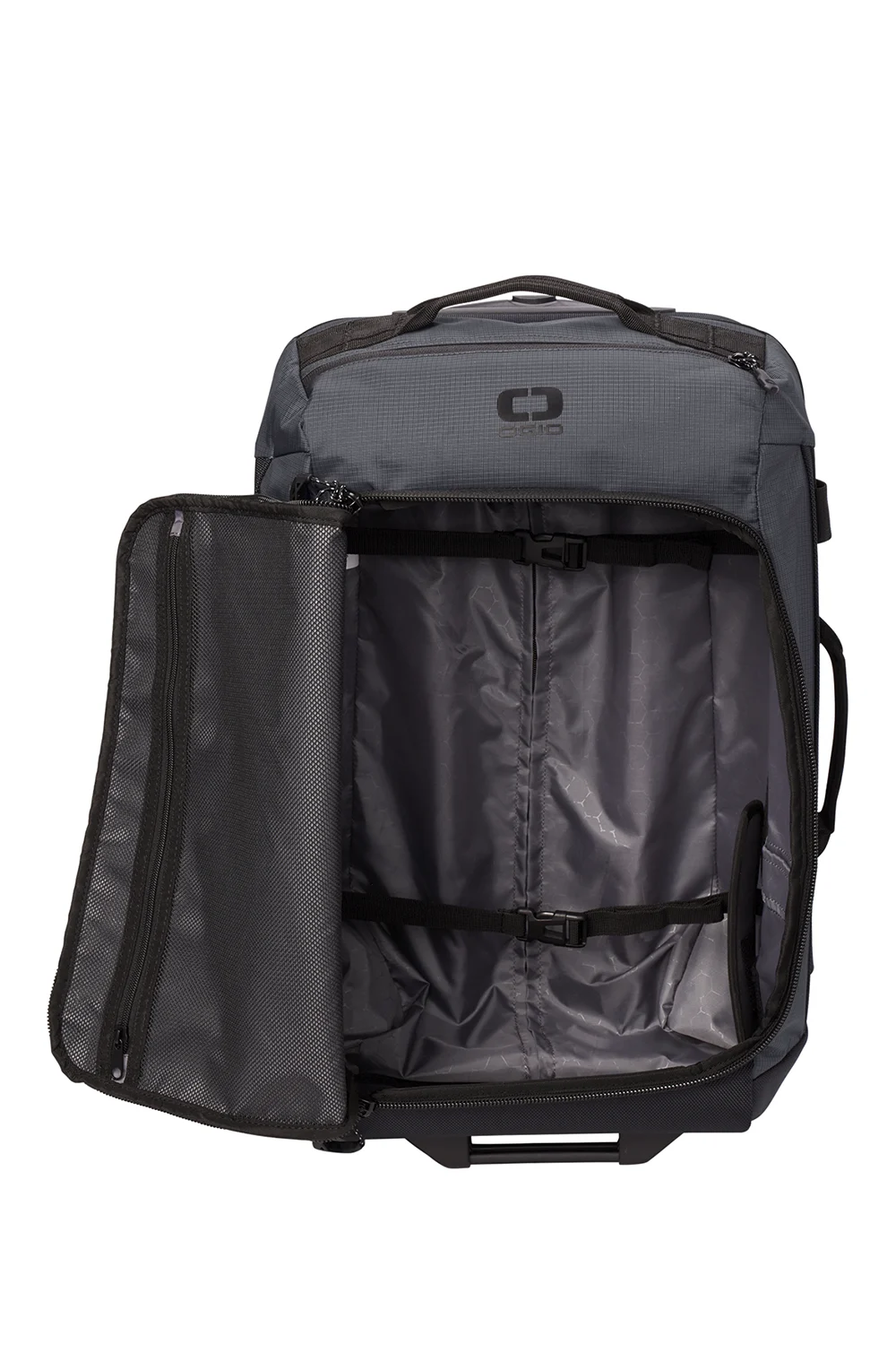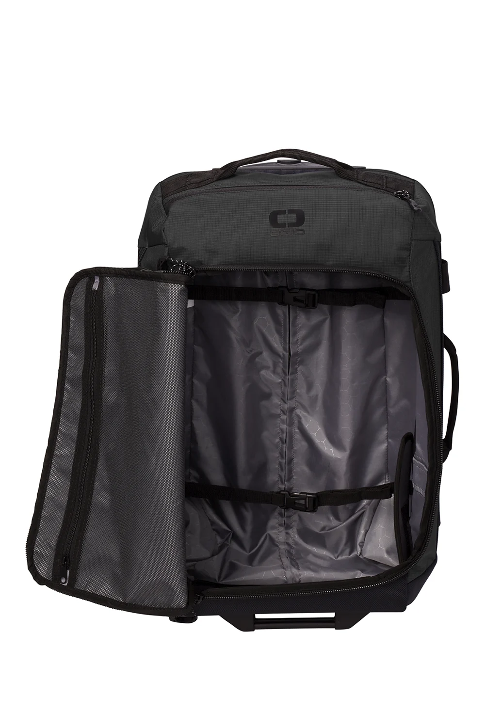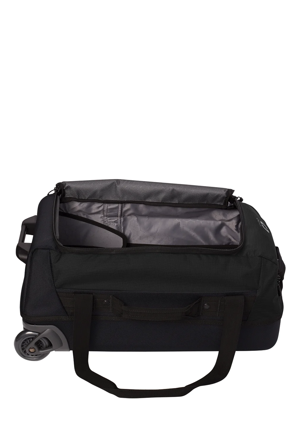 Upgrade your travel with the Passage Wheeled Carry-On Duffel. Equipped with a telescoping handle, a top zippered valuables pocket, and rugged in-line wheels, it ensures smooth and secure journeys. The compression-molded panels and padded grab handles offer durability and comfort, while interior features like zippered mesh pockets and compression straps keep your gear organized. With its high-density O screen print and convenient luggage feet handle, the Passage Duffel combines practicality with style for the modern traveler. Plus, it comes with a professionally DTF logo, adding a touch of sophistication.