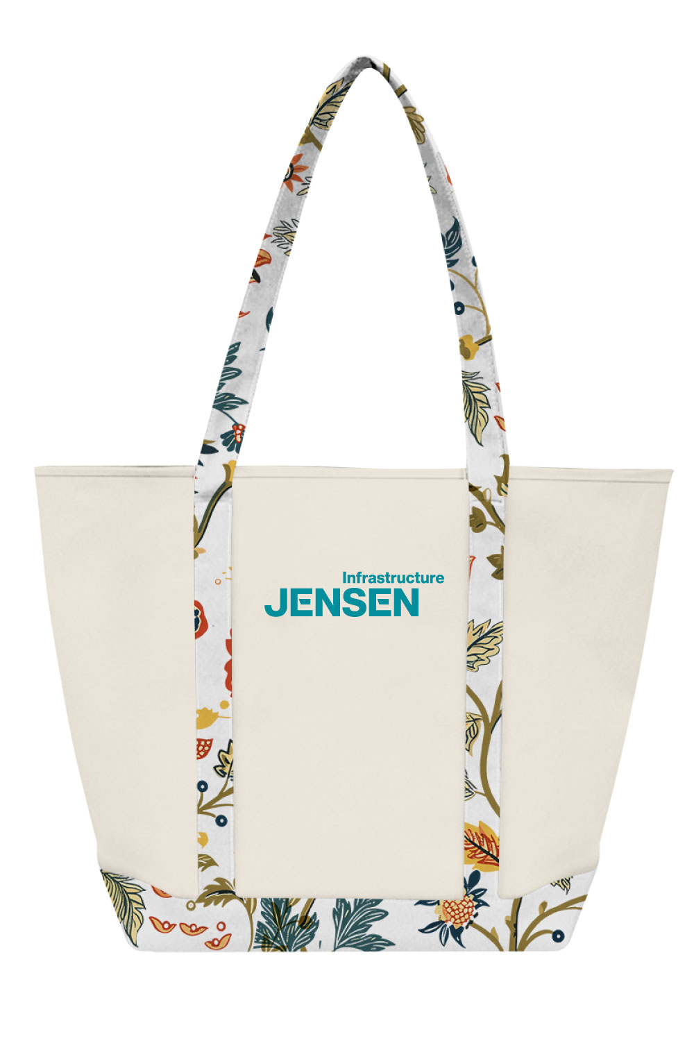 Crafted from durable 14 oz. recycled natural poly canvas (504 GSM), this eco-conscious tote features the Jensen logo and is perfect for everyday use. It offers a spacious open main compartment and sturdy 24″ handles for comfortable carrying. Easy to care for with spot clean and air dry instructions, this USA-made tote combines sustainability, practicality, and style—ready to go wherever your day takes you.
