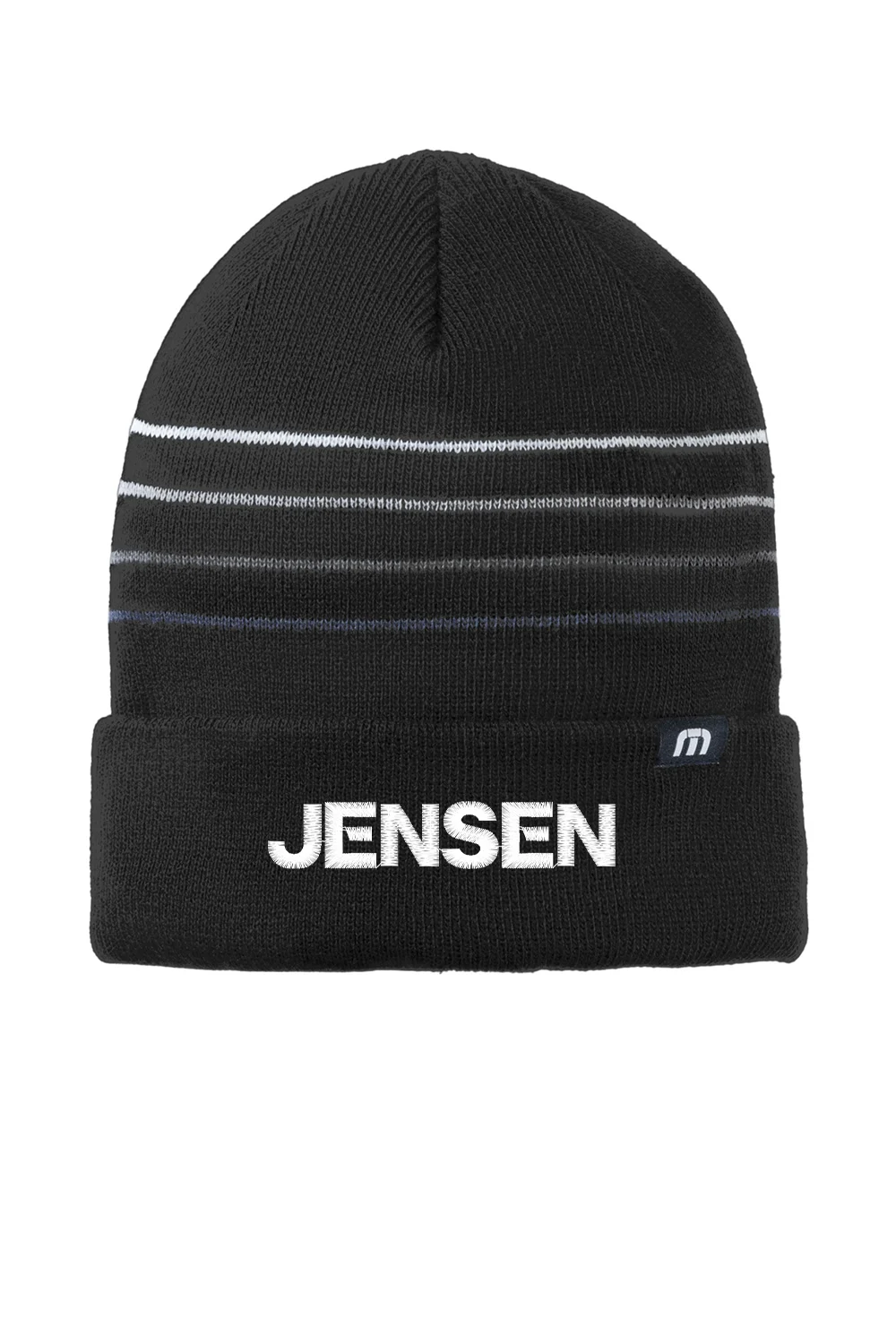 Step up your style and comfort with the TravisMathew Striped Cuffed Beanie. Featuring a tear-away label and crown grippers for a perfect shape, this beanie offers an adjustable cuff height for a custom fit. A woven TM label on the left cuff adds a touch of distinction. Its main logo is embroidered. Stay ahead of the trends with a beanie that combines fashion and function.