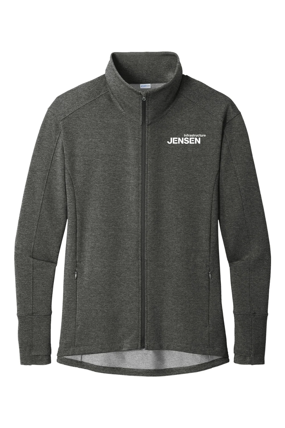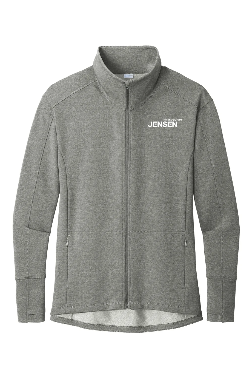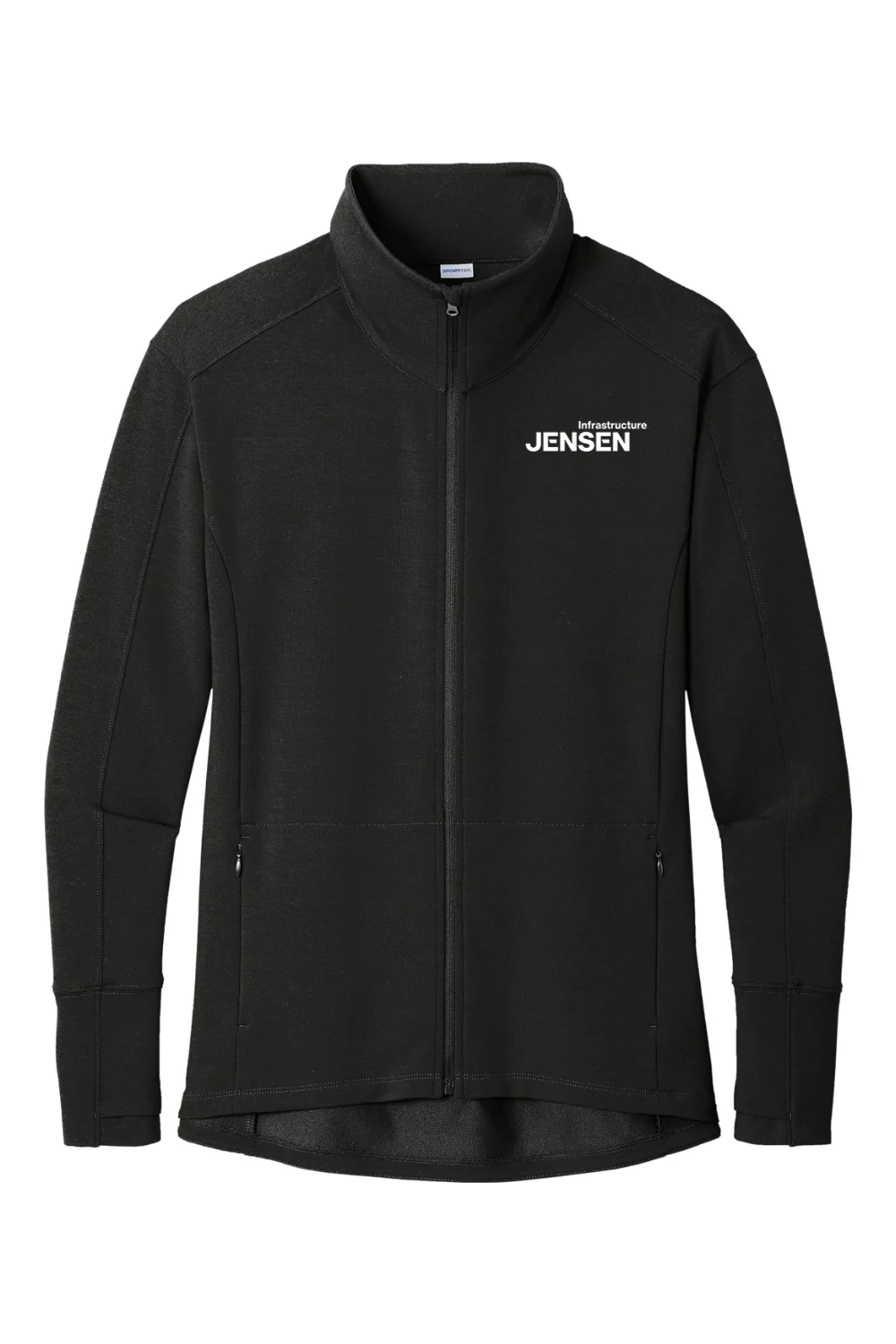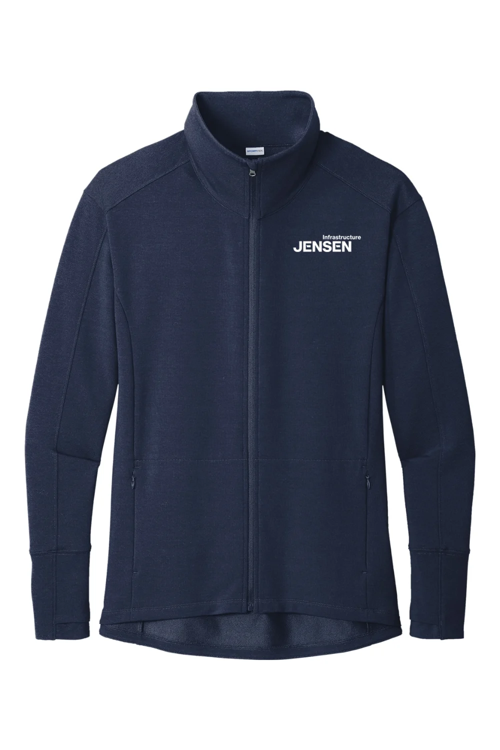 Move with confidence in the Women’s Flex Fleece Full-Zip. This lightweight sweatshirt combines the softness of cotton with moisture-wicking stretch properties and modern styling. Designed for comfort and functionality, it features a cadet-style collar, zippered side pockets, thumbholes for warmth, and a dropped back hem for added coverage. With a DTF decoration at the left chest and a tear-away label, it’s the perfect combination of performance and style.
