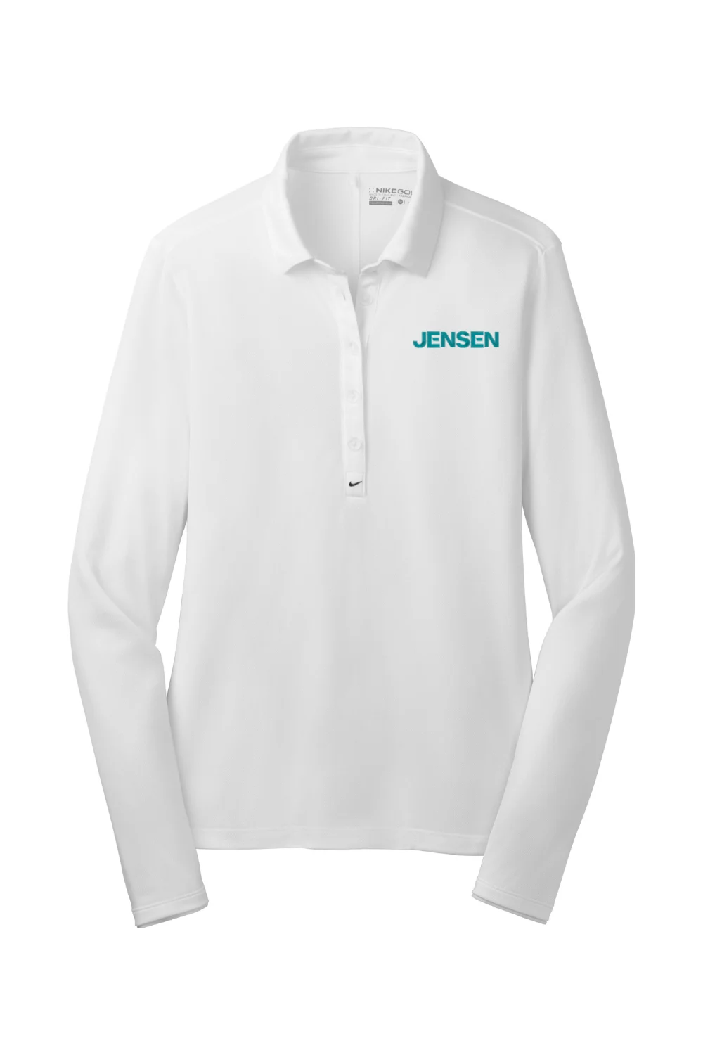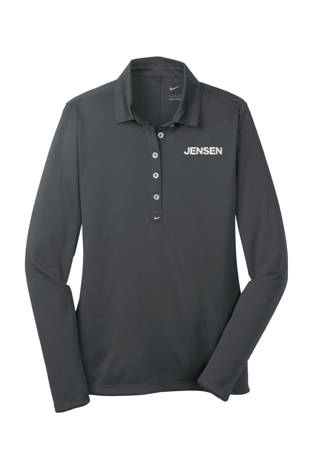 The Women’s Nike Long Sleeve Dri-FIT Stretch Tech Polo brings sleek style and all-day performance together. With moisture-wicking Dri-FIT fabric, a flattering feminine fit, and just the right amount of stretch, it’s designed to move with her—whether she’s powering through the workday or perfecting her swing. The embroidered Jensen logo on the left chest adds the perfect finishing touch.