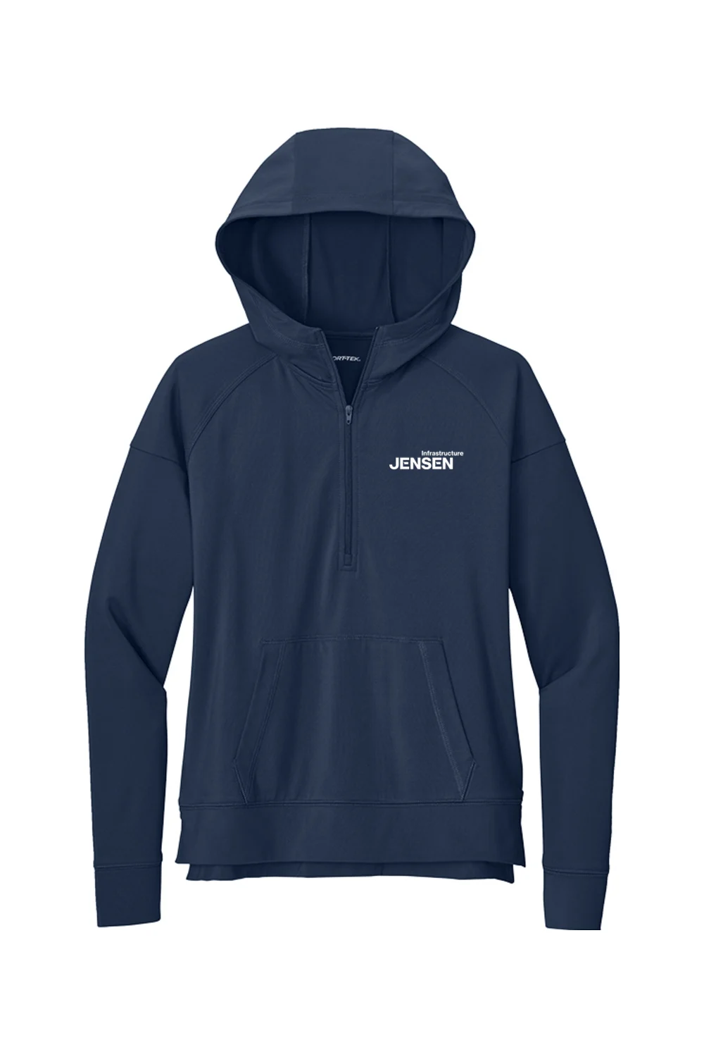 Rise to the occasion with the Women’s Stretch Half-Zip Hoodie. Crafted for performance and comfort, this moisture-wicking hoodie features a front pouch pocket and a split, dropped back hem for a stylish and functional fit. The DTF logo on the left chest and a tagless label enhance comfort, making it the perfect choice for both active and casual wear.