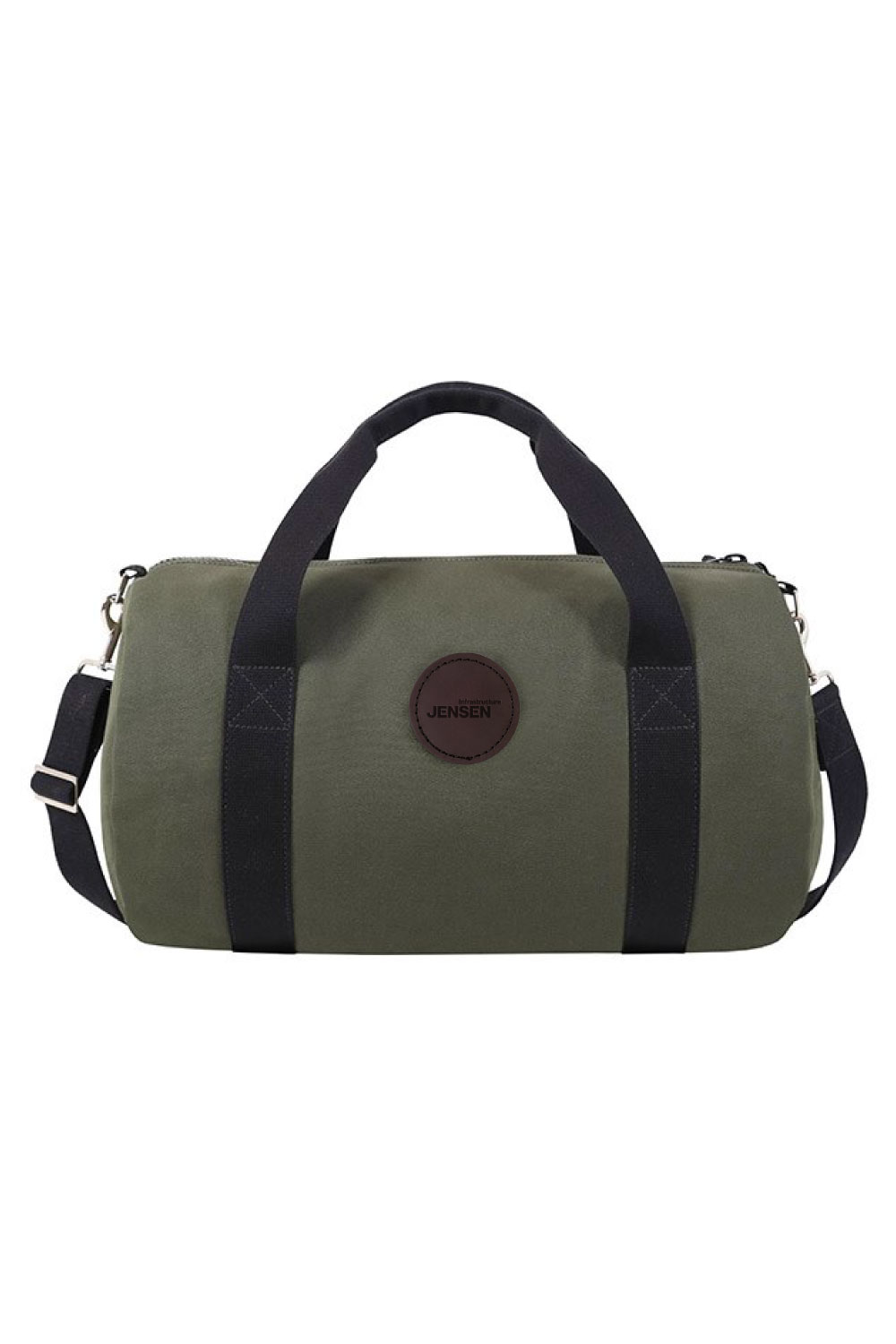 Rugged, spacious, and ready for adventure, this classic round duffel is built from heavy-duty 15 oz. canvas and designed for durability. It features a wide top zipper for easy access, a comfortable shoulder strap, and a clean, timeless look. Perfect for weekend trips, the gym, or daily carry. Made in the USA and finished with the Jensen logo to create a premium piece your clients will love.